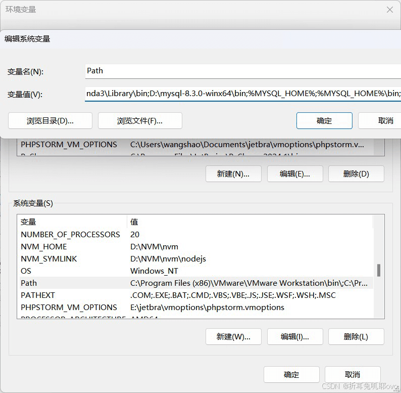 将解压文件夹下的bin路径添加到变量值中,前后以 ; 开头结尾