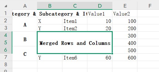 通过上面的各自步骤,成功创建了一个包含合并行和列的excel表。