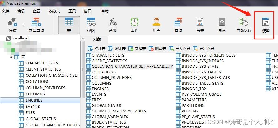 本文使用的版本是navicat premium 12,其他版本可能按钮位置不一样。