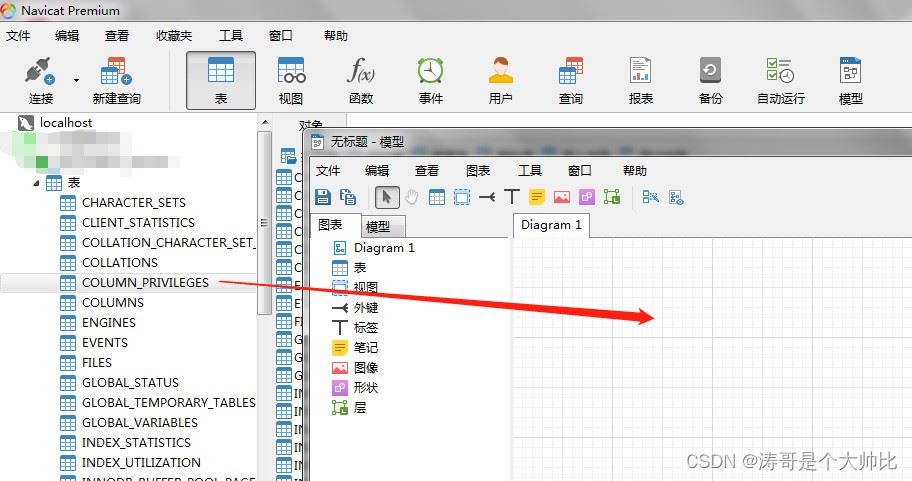 3.导入需要的表,可以直接采取拖拽表名的方式