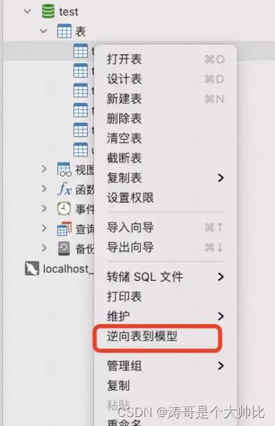 也可以右键选择“逆向表到模型” ,这样可以不用自己创建模型