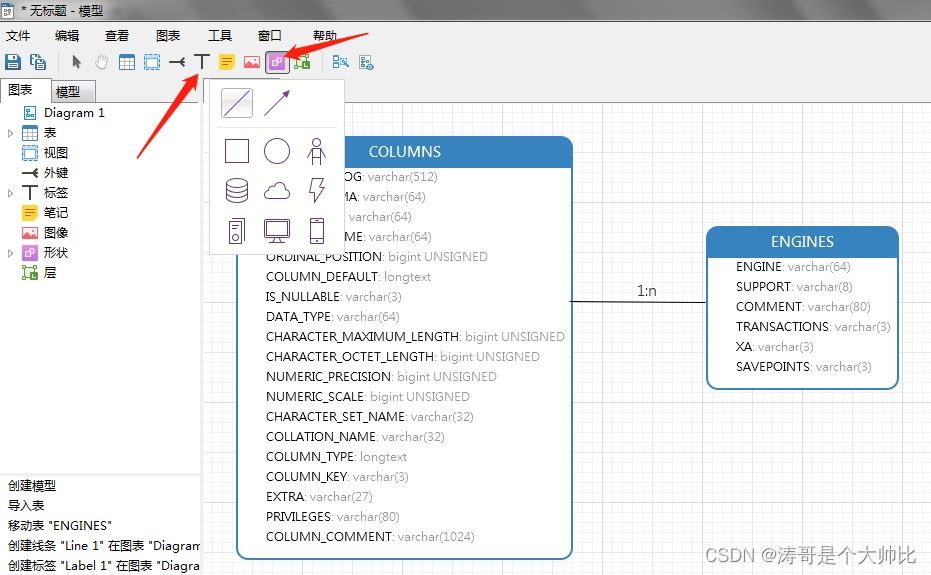 我们只要点击切换到“er图表”就可以建立一个er关系图了,第一次会花点时间。