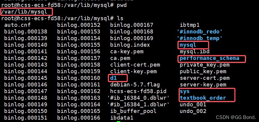 其实这里的数据库在操作系统下同样也是以文件的形式存在的,我们可以查看/var/lib/mysql这个路径,在这个路径中我们就可以看到我们的这几个数据库,而且是以文件夹的形式存在的