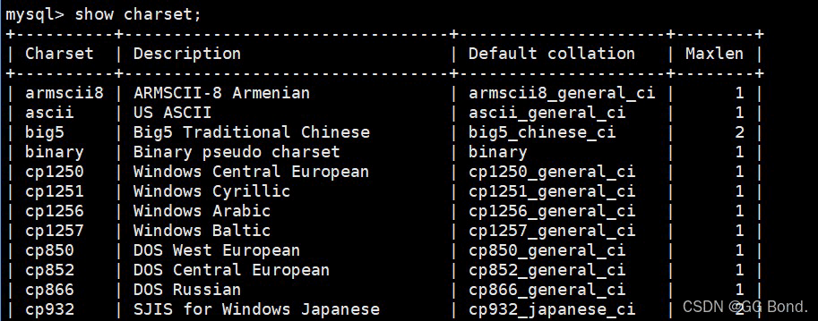show charset;