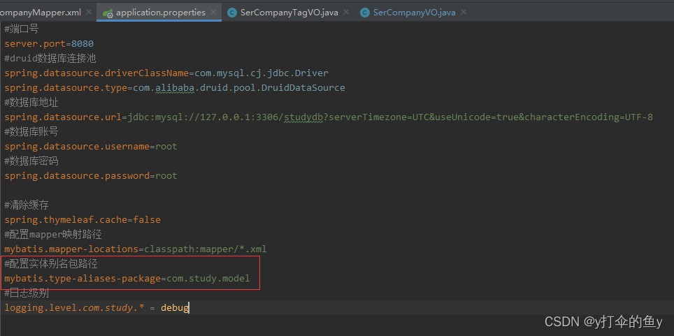 配置文件中,使用mybatis.type-aliases-package配置类的别名