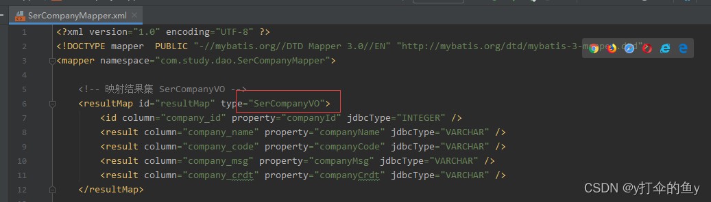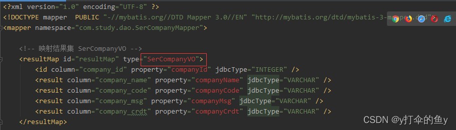 上面的代码中,我们为userentity定义了一个别名sercompanyvo,这样在映射文件中引用sercompanyvo时,就可以直接使用sercompanyvo来代替完整的类名了。