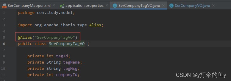 在model类的具体包增加 @alias(“sercompanyvo”) 注解。就是把自己的类名写在双引号中。具体如下: