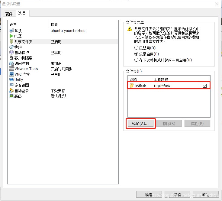 1.在vmware中添加共享文件夹