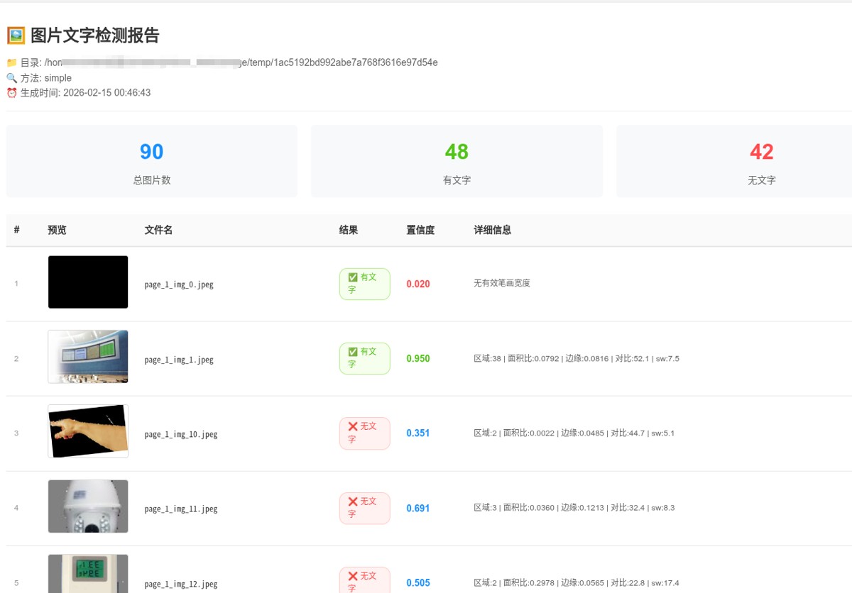 运行结束后会在根目录生成 text_detection_report.html,用浏览器打开即可看到完整报告。