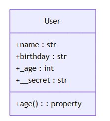 缺点:如果之前代码中已经大量使用user.age的形式访问年龄,改为user.get_age()需要修改大量代码。