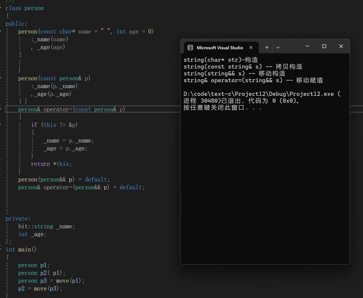 • c++11可以让你更好的控制要使⽤的默认函数。假设你要使⽤某个默认的函数,但是因为⼀些原因 这个函数没有默认⽣成。⽐如:我们提供了拷⻉构造,就不会⽣成移动构造了,那么我们可以使⽤ default关键字显⽰指定移动构造⽣成。