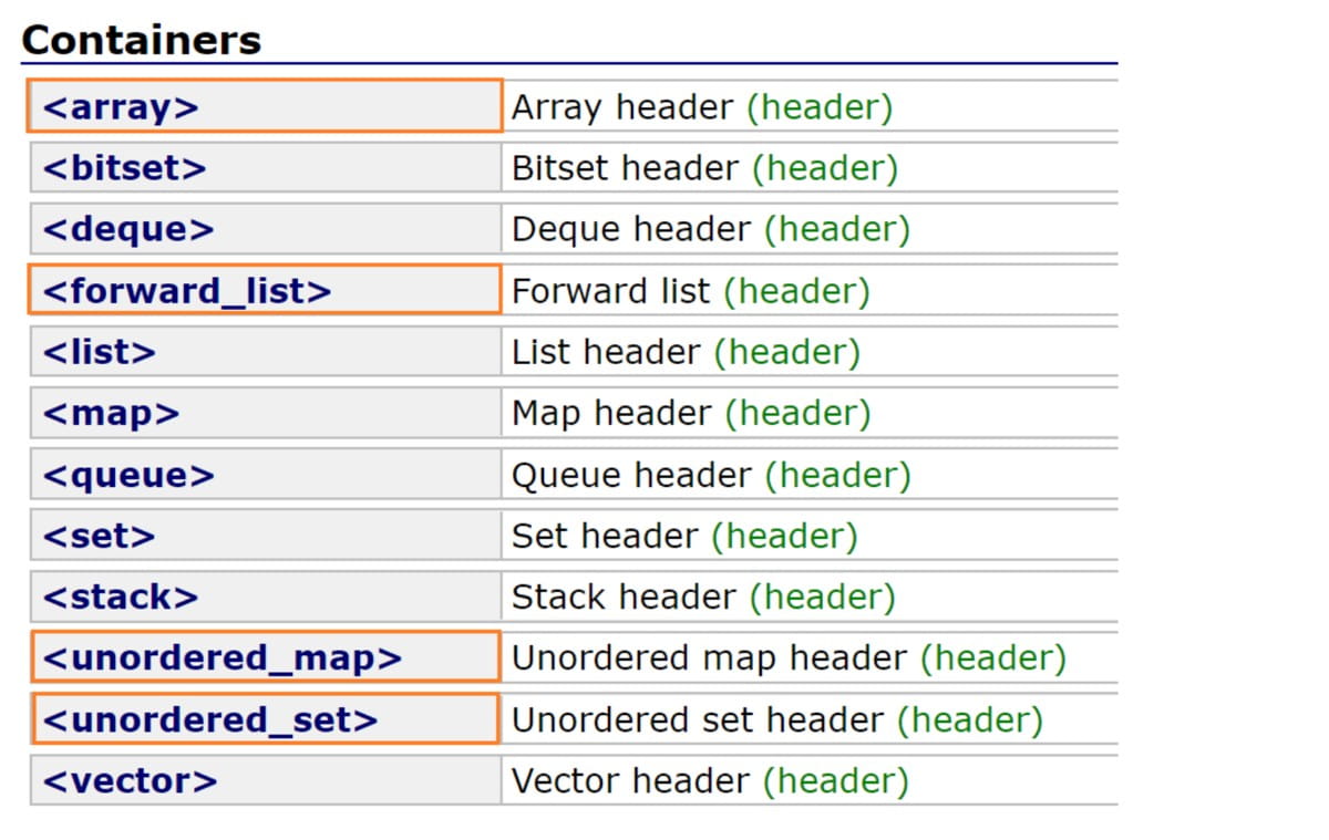 • 下图1圈起来的就是stl中的新容器,但是实际最有⽤的是unordered_map和unordered_set。这 两个我们前⾯已经进⾏了⾮常详细的讲解,其他的⼤家了解⼀下即可。