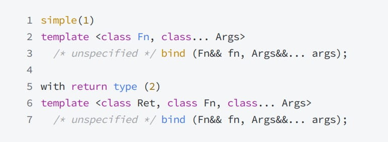 • ->return type :返回值类型,⽤追踪返回类型形式声明函数的返回值类型,没有返回值时此部分可省略。⼀般返回值类型明确情况下,也可省略,由编译器对返回类型进⾏推导。