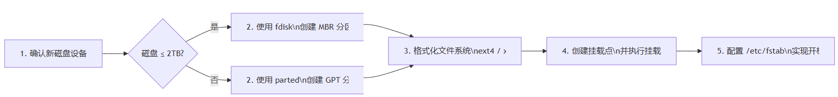 对于需要灵活扩展的场景,可以在新磁盘上创建 lvm 物理卷(pv),再划分卷组(vg)和逻辑卷(lv),之后再在 lv 上创建文件系统。这属于更高级的存储管理方案,但基础流程仍然离不开“分区/整盘 → pv → vg → lv → 文件系统 → 挂载”。