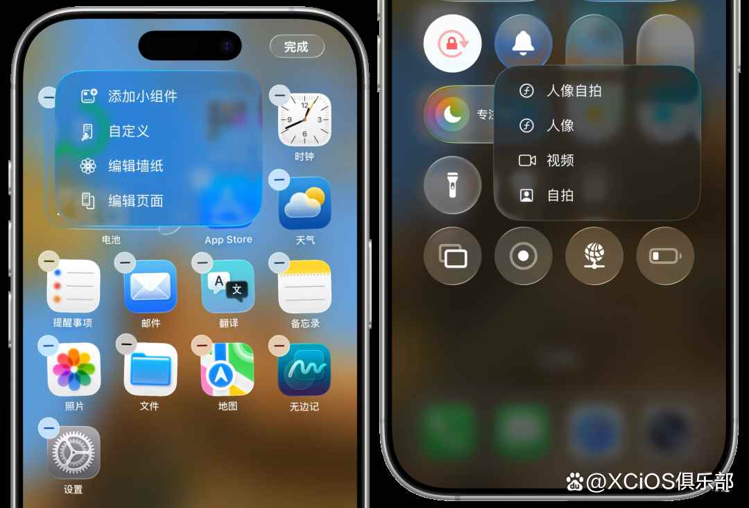 首先是在多个界面下,现在新增了液态玻璃的透明效果,例如「屏幕编辑菜单」和「控制中心二级菜单」,相比之前看起来更加漂亮灵动了。