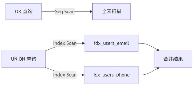 -- ✅ 每个子查询都能走索引 select * from users where email = 'a@example.com' union select * from users where phone = '1234567890';