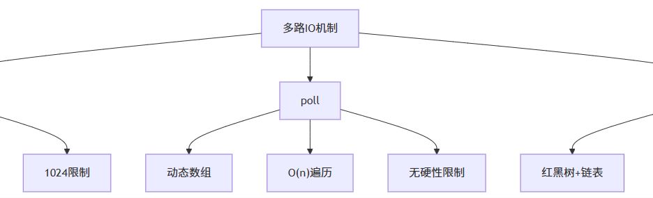 poll解决了select的一些限制,特别是文件描述符数量的限制。