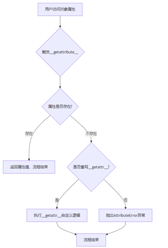 为了直观理解二者的调用顺序,我们通过流程图展示python属性访问的完整链路: