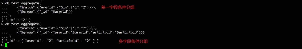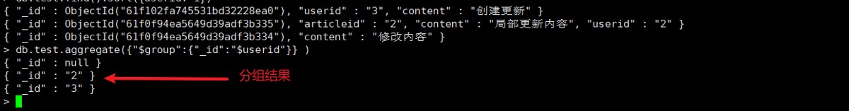 分组后不会展示其他字段, _id为固定写法,userid为分组字段