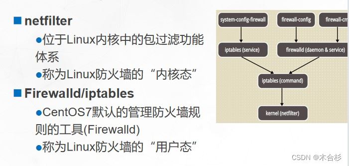iptables就属于用户态防火墙,配置规则生效后,立即生效,无需重启。centos7之前,iptables是默认配置,现在默认是firewalld。centos7之后要使用iptables要把firewalld关闭