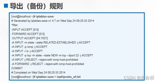 [root@localhost ~]# iptables-save >/opt/iptables.bak