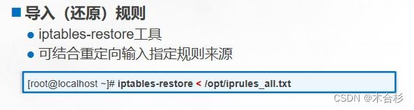 [root@localhost ~]#iptables-restore </opt/iptables.bak