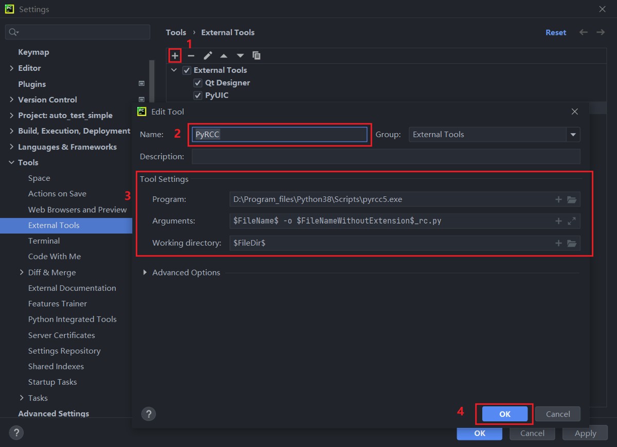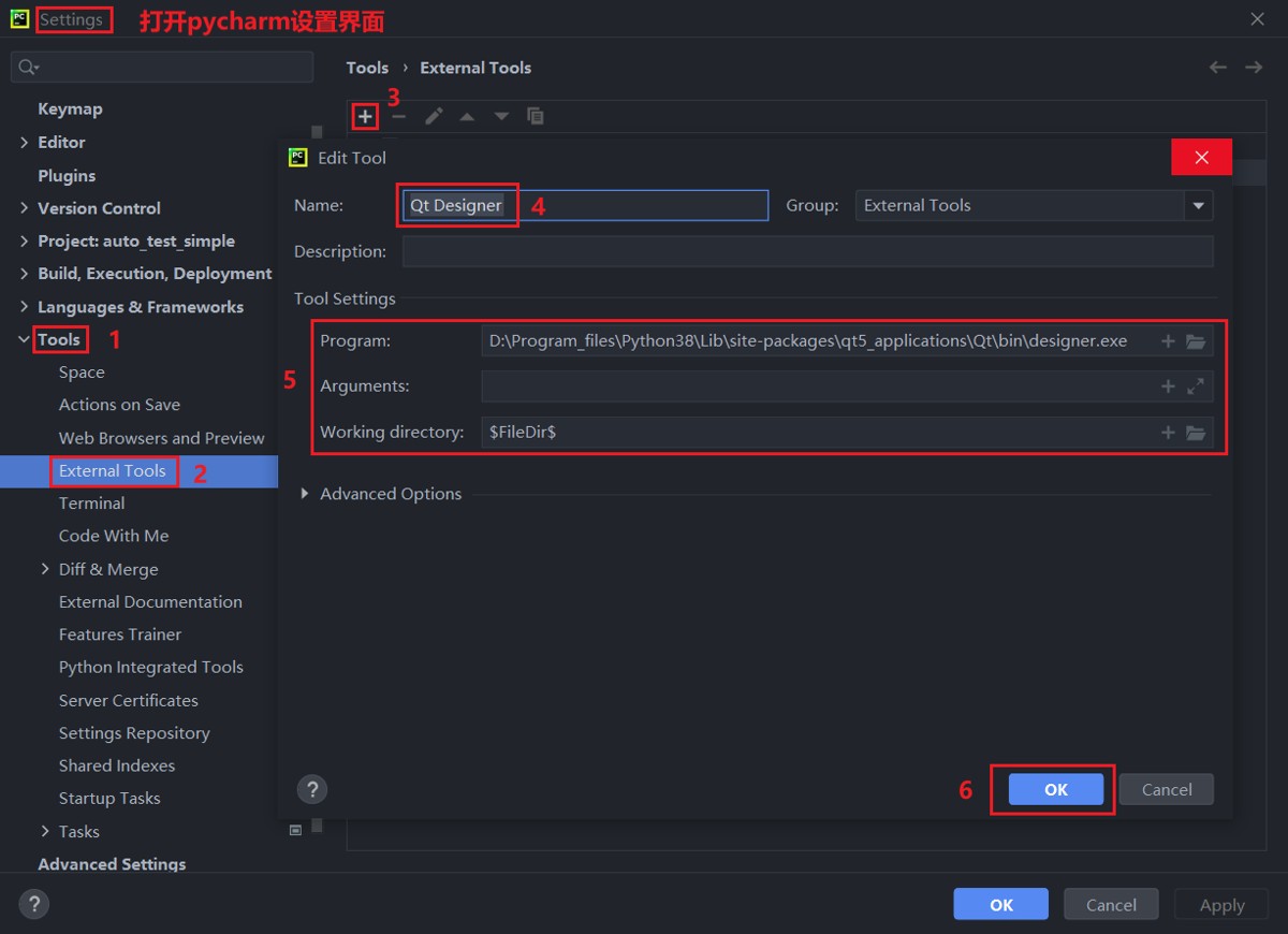 python安装了pyqt以后,在pycharm配置qt designer、pyuic、pyrcc,方便直接启动,并做pyqt文件的编译转换