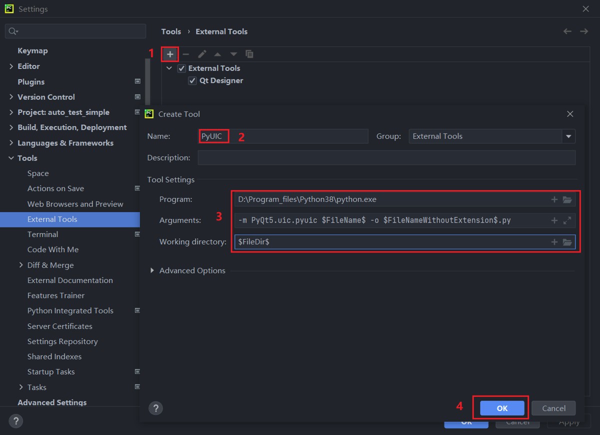 pyuic d:\program_files\python38\python.exe -m pyqt5.uic.pyuic $filename$ -o $filenamewithoutextension$.py $filedir$