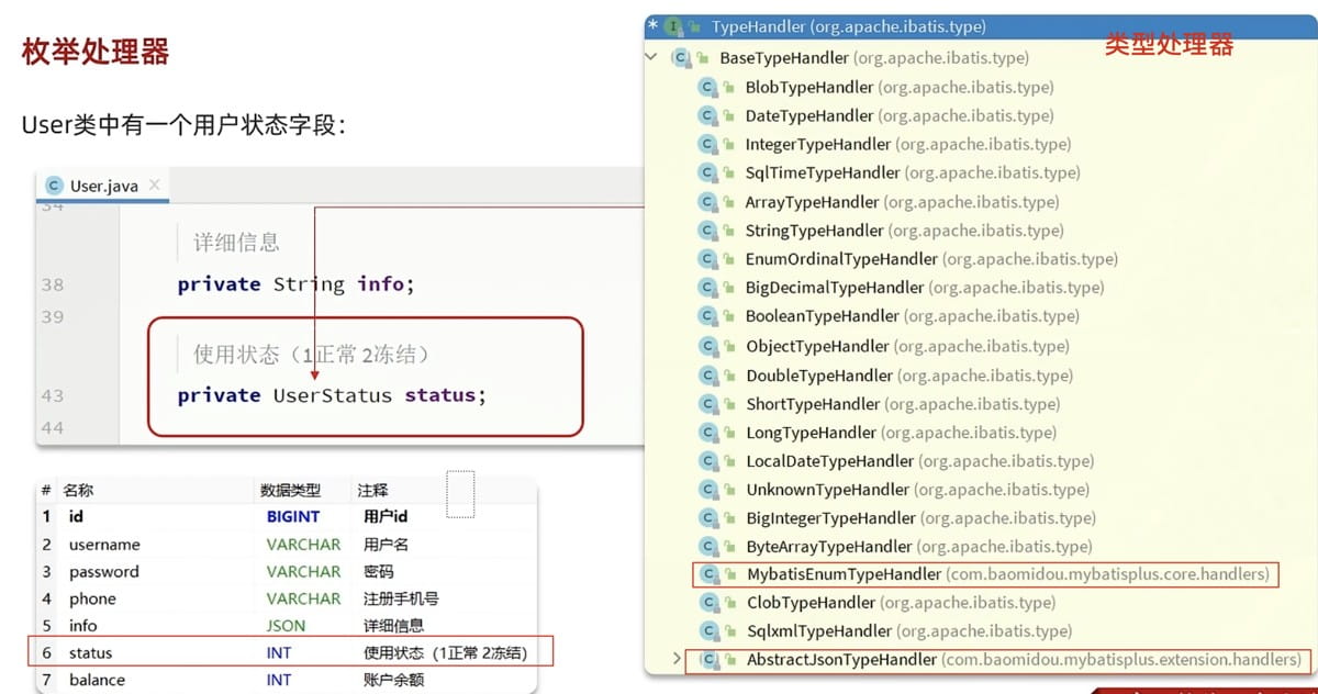 mybatis-plus 提供了枚举处理器,让我们可以优雅地在数据库字段和 java 枚举之间进行转换,而不需要手动处理映射关系。