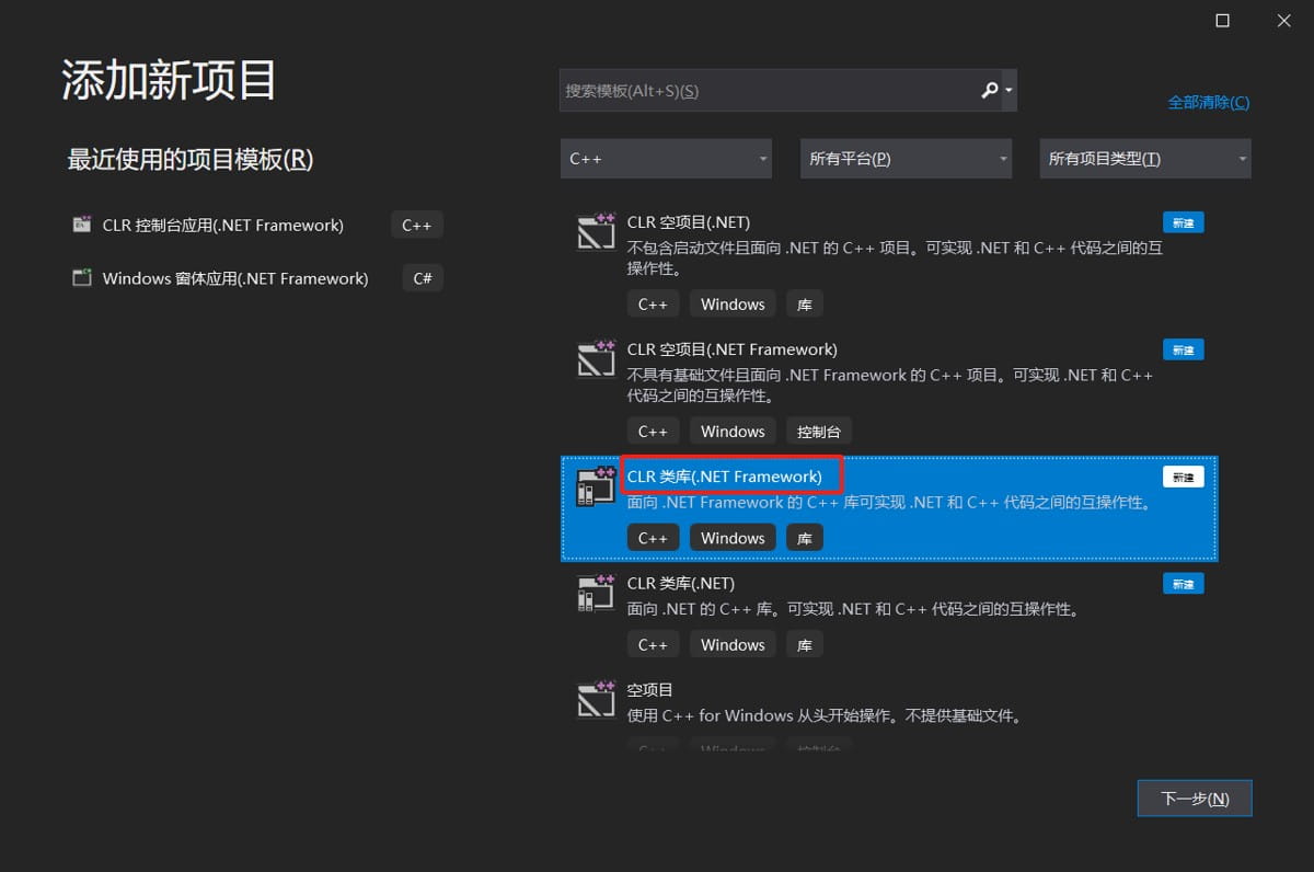 1、此示例新建c++/clr .netframework项目
