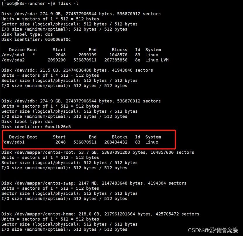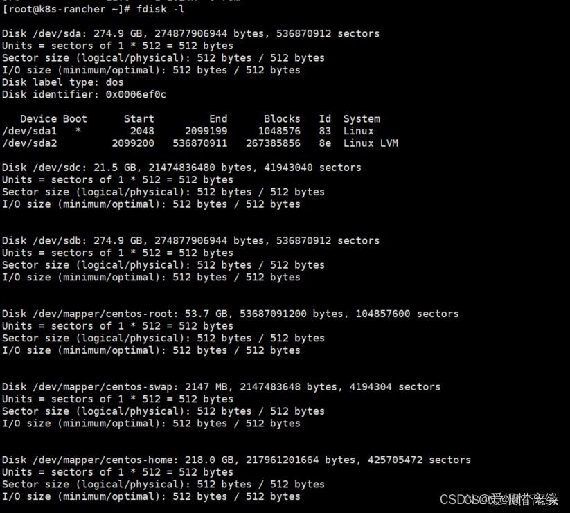 3、fdisk -l查看挂载之前的分区情况