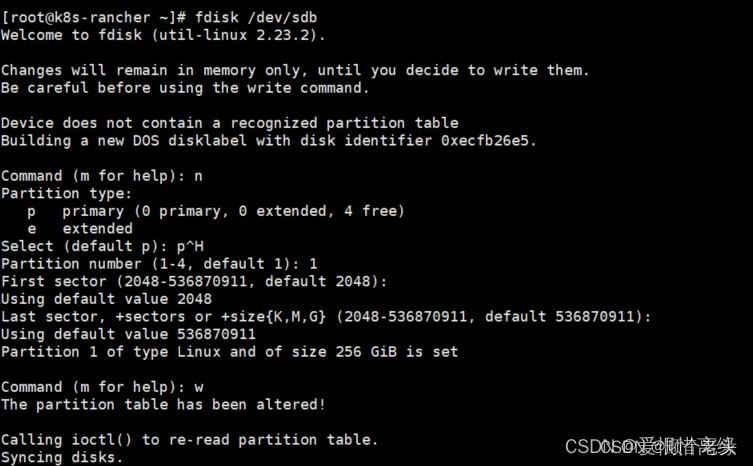 4、为新硬盘创建分区 fdisk /dev/sdb