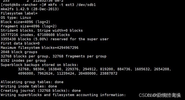 6、mkfs -t ext3 /dev/sdb1对新区进行格式化