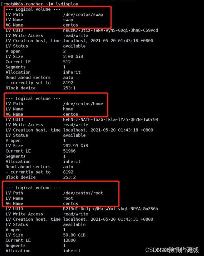 其中centos 是第8步中的vg name