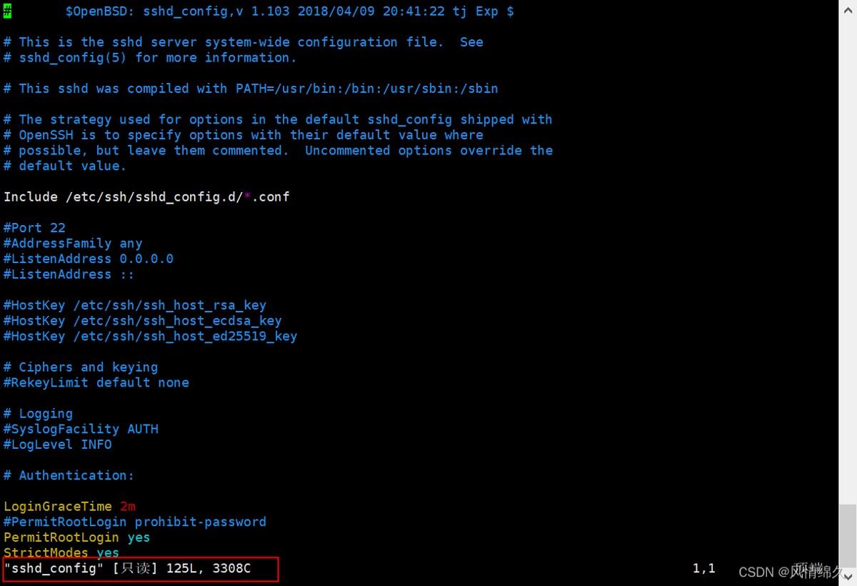 vim sshd_config,发现该文件只可读