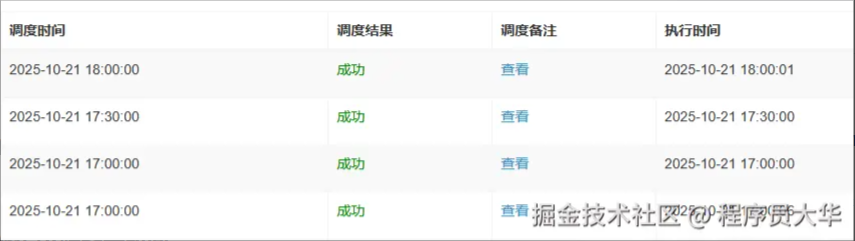 1.调度时间:反映a服务器(调度中心)的触发时间 2.执行时间:来自b服务器(执行器)上报的时间