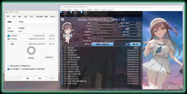 ▼启动 crystaldiskinfo,可以直观看到 vc10 的各项参数:它支持最新的 nvme 2.0 协议,1tb 版本的实际可用空间为 931gb。
