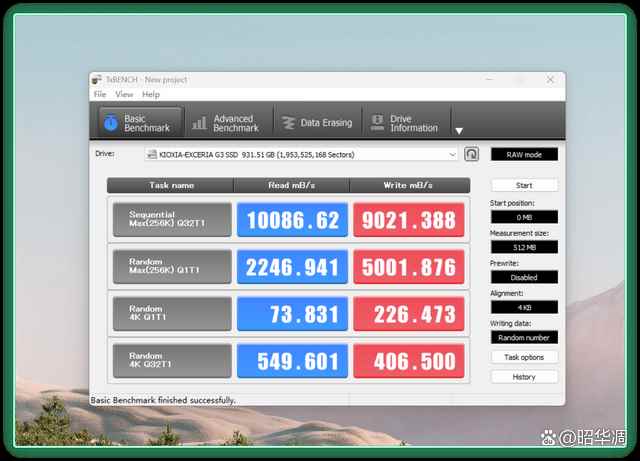 ▼在另一款常用测试软件 txbench 中,铠侠 vc10 的顺序读取速度为 10086mb/s,顺序写入速度为 9021mb/s,已然超过了官标值。