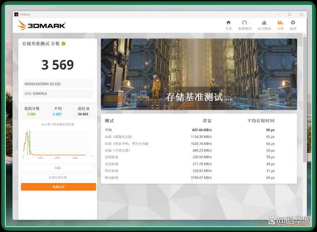 ps:amd平台的硬盘性能更重视顺序读写,而 3dmark 重点考察的是 4k 随机读写,所以这个分数已经相当不错了,换成 intel 平台应该能跑到 5500 以上。
