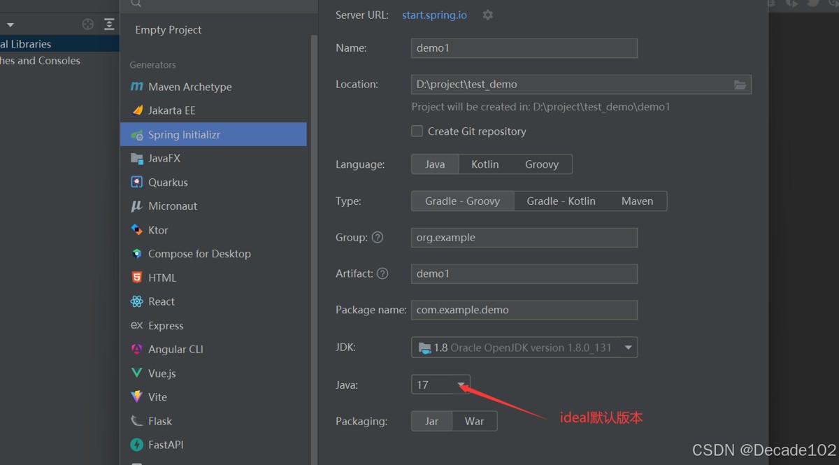 电脑本地安装的jdk版本与idea创建spring工程时默认的jdk版本17不一致