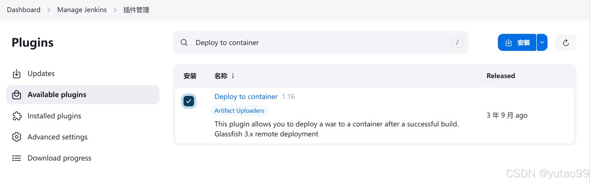 不需要安装、不需要数据库,只需通过java -jar jenkins.war或部署到一个servlet容器中