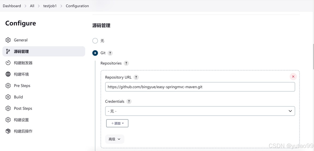 注意:如果是私有仓库,这里需要建立credentials身份认证