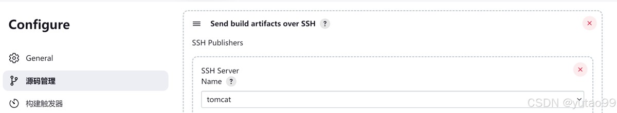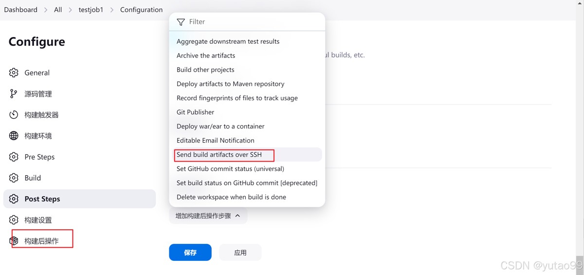 在构建后设置中 选择:(send build artifacts over ssh)通过ssh发送构建工件