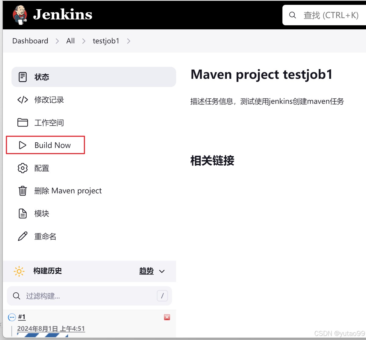 任务:(job)是jenkins的一个执行计划,是一系列操作的集合。 构建:是jenkins的任务的一次运行。