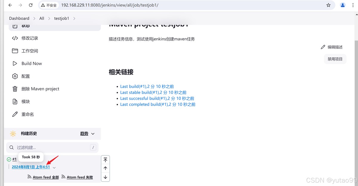 构建之后,在jenkins服务器上是可以自动看到war包的。(该路径不需要创建) # ls /root/.jenkins/jobs/testjob1/builds/target/*.war