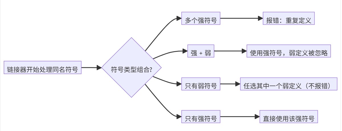 - 如果有多个弱定义,任选一个(通常是第一个遇到的)