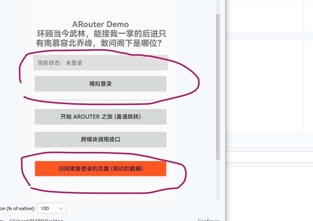 修改下之前的demo,测试下arouter拦截器。页面如下: