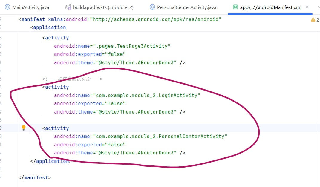 }主模块注册业务模块的activity: