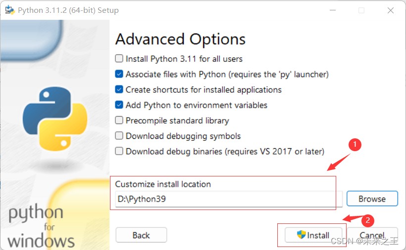 (这里建议将python不安装在默认盘,安装在d盘或e盘)如:d:\python\python38、d:python38\scripts