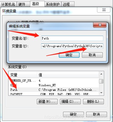将python安装文件的目录添加进去。(包括python安装路径和scripts路径)
